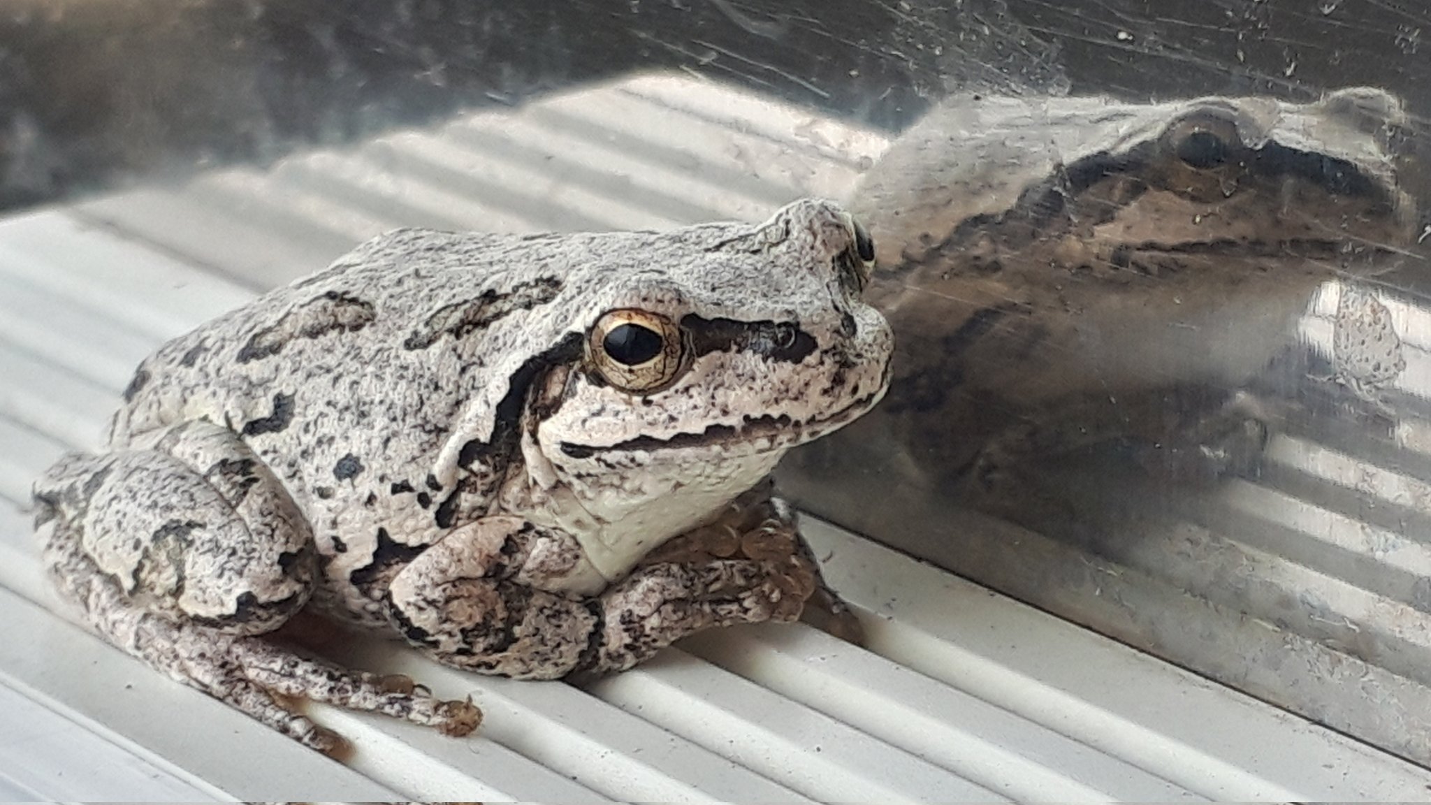 ベランダに住み着いた 幸運の白いカエル Veraniwa